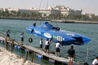 Wieder sehr unzufrieden war das Victory Team. Mit Platz vier und fünf für die 7 und 77 ist man ganz bestimmt nicht zufrieden. Das Team Qatar 96 hatte ja mit dem neuen Boot auf einen Platz auf dem Treppchen gehofft aber leider hatte es nicht sollen sein. Platz sechs noch vor der Damas ist ja schon ein Schritt nach vorn. Hinter der Damas ging die GFN Gibellato durchs Ziel
